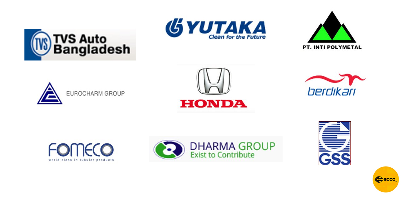 Soco w swojej ofercie posiada kilkadziesiąt modeli rozmaitych maszyn do gięcia rur, profili i prętów. Ponadto występują zautomatyzowane proste i skomplikowane linie do obróbki blach i rur techniką laserową (Fiber). Oprócz tego posiada całą gamę przecinarek tarczowych oraz kompleksowe rozwiązania do wykończenia profili i rur (fazowanie). Poniżej przedstawiamy zaledwie kilkanaście przykładów firm o światowej renomie i rozpoznawalności, które korzystają z powodzeniem od lat z wypracowanej myśli technicznej wizjonerów SOCO.