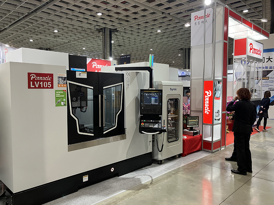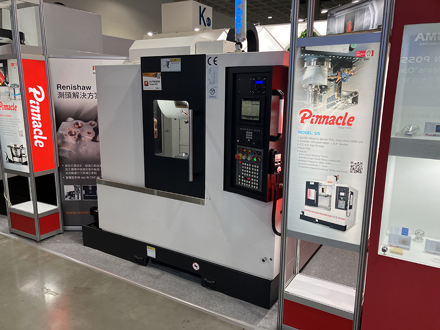 Spotkaliśmy się także z przedstawicielami firmy PINNACLE, która jest jednym z wiodących producentów zaawansowanych centrów frezarskich CNC. Na stoisku prezentowano między innymi małe centrum obróbcze U5 oraz uznane od lat centrum frezarskie LV105.