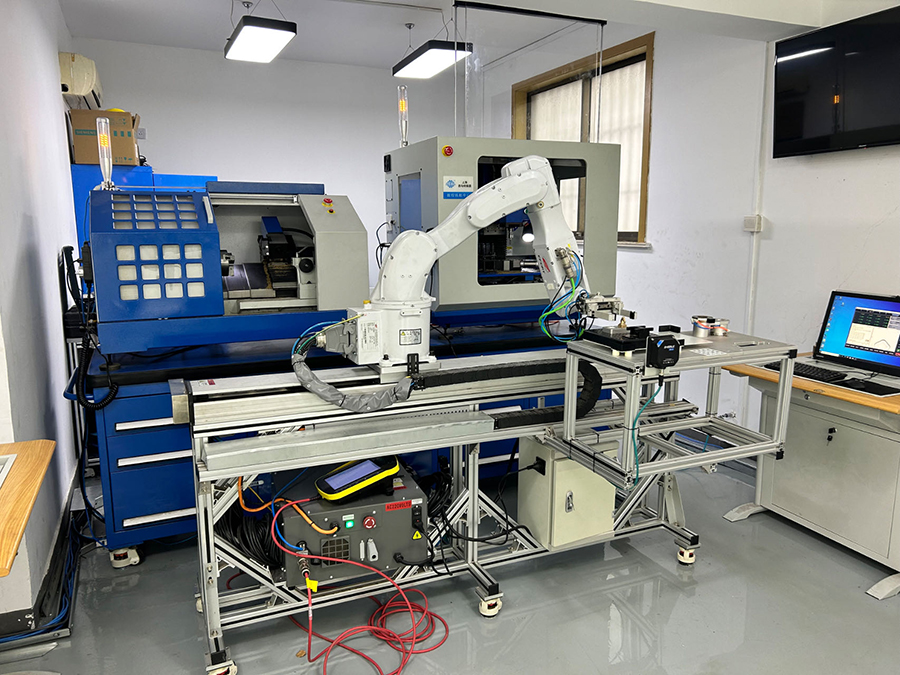 Centrum obróbcze CNC, tokarka cnc z 6-osiowym robotem z uchwytem pneumatycznym.