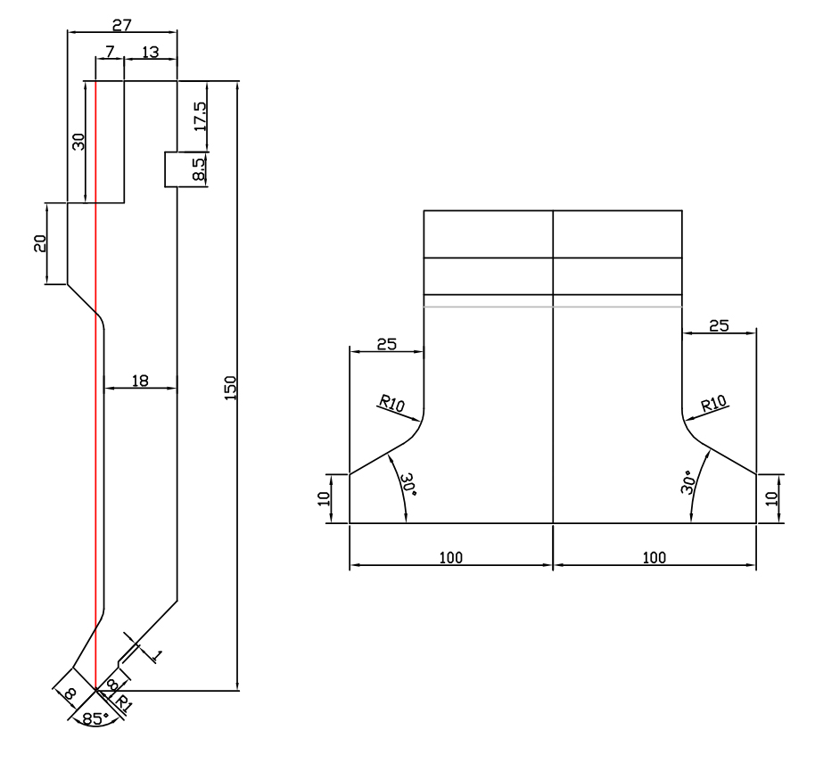 - Tolerancja równoległości i prostoliniowości górnej matrycy: ±0,02 mm