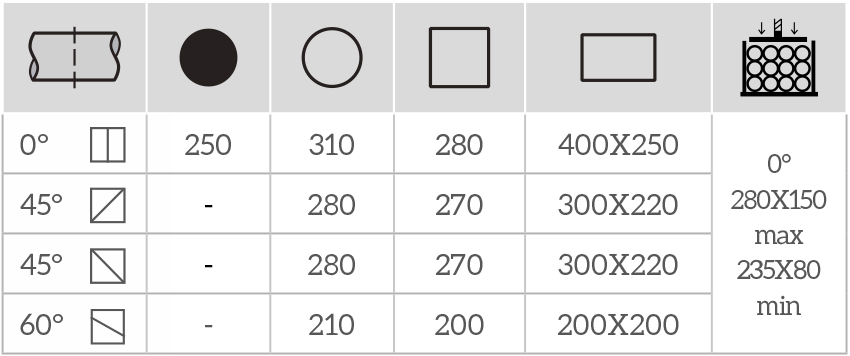 • Угол резки: вправо 0° - 45° - 60°; влево - 45°