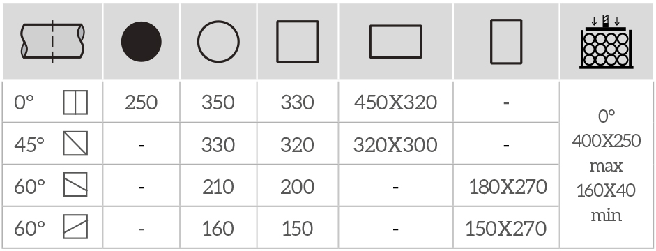 - Угол резки: вправо 0° - 45° - 60°; влево 0°–45°–60°