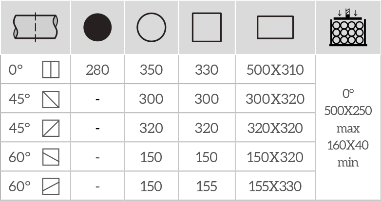 - Угол резки: вправо 0° - 45° - 60°; влево 0°–45°–60°